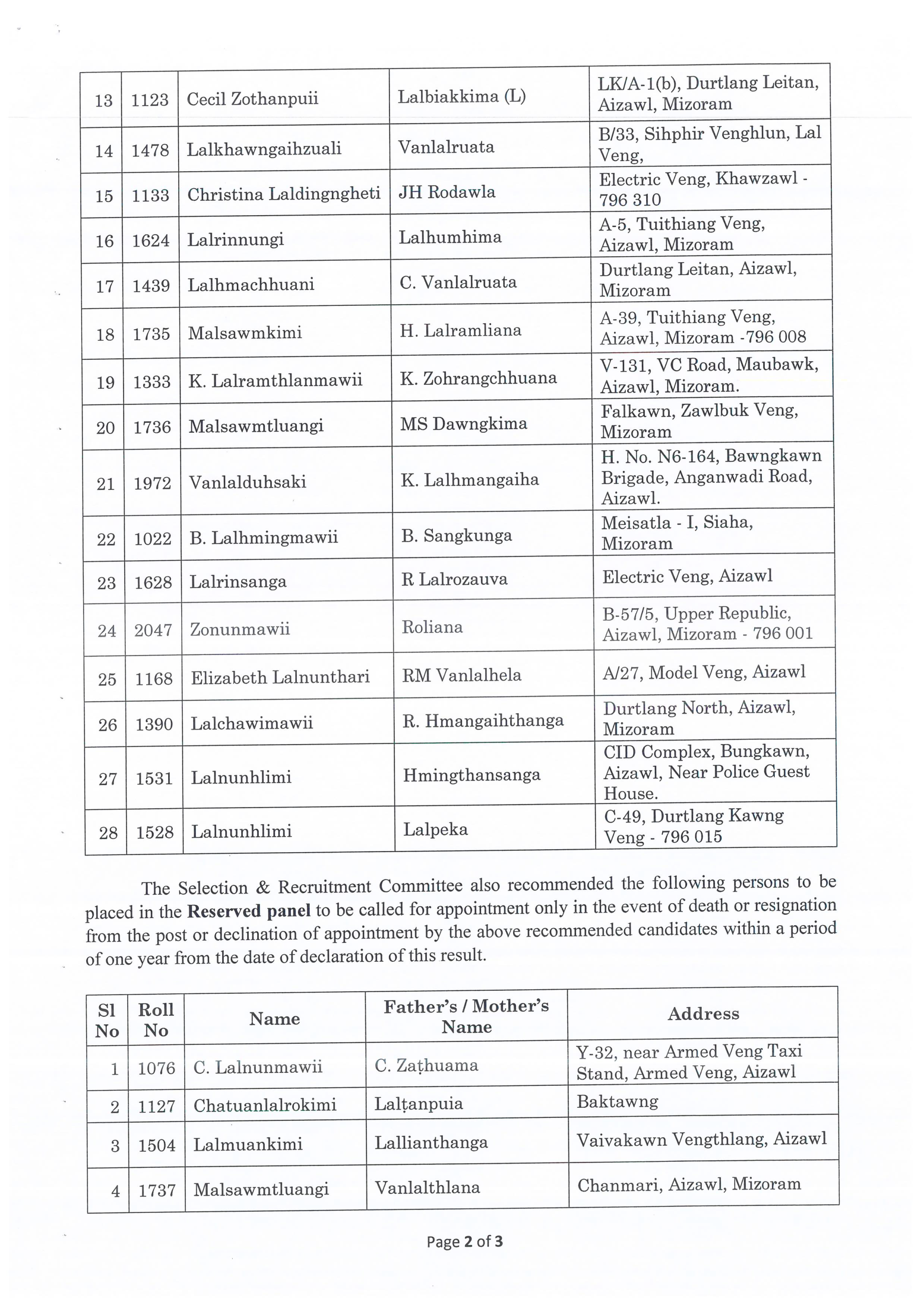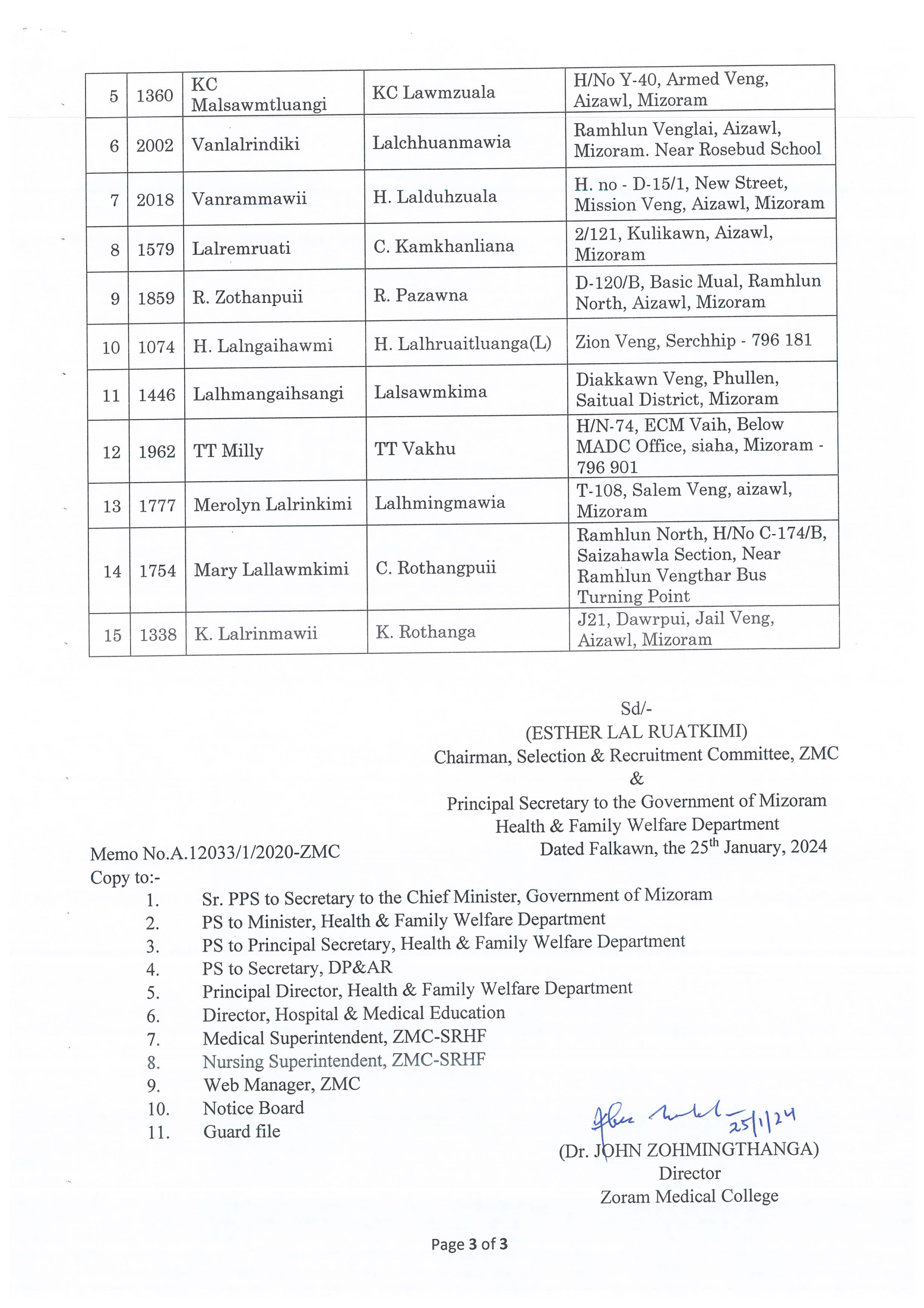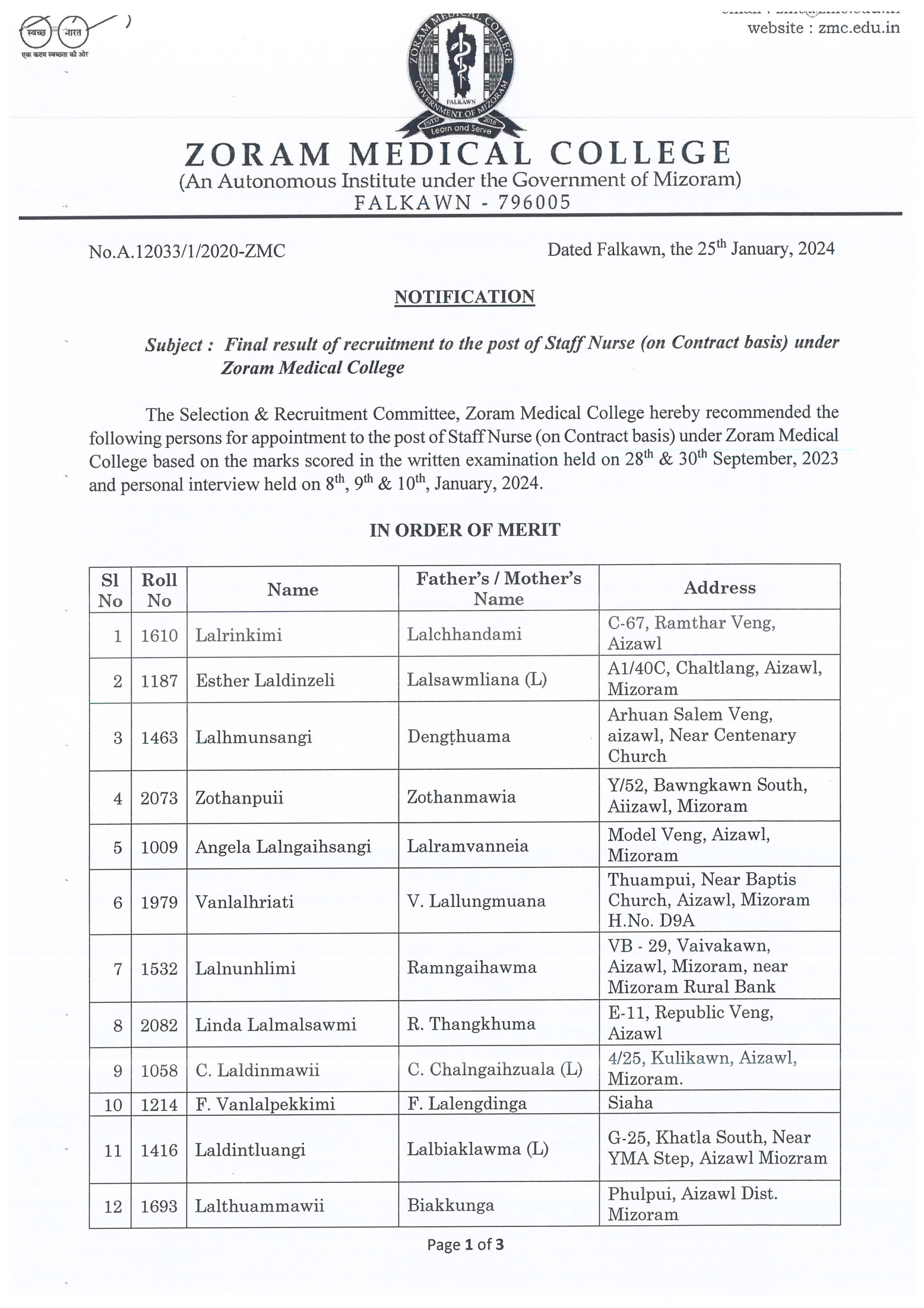 Staff Nurse Result, ZMC 2024